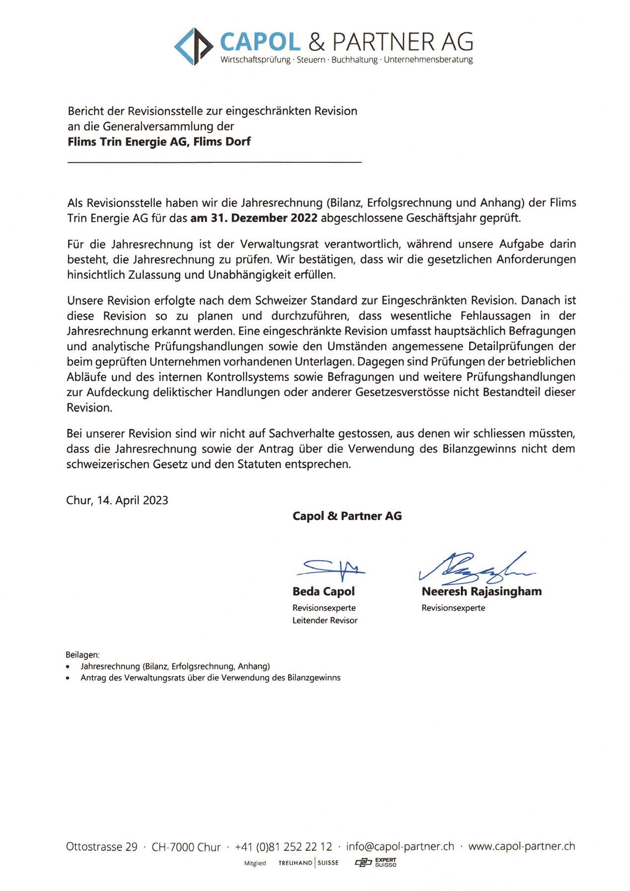 2 – Flims Trin Energie Jahresbericht