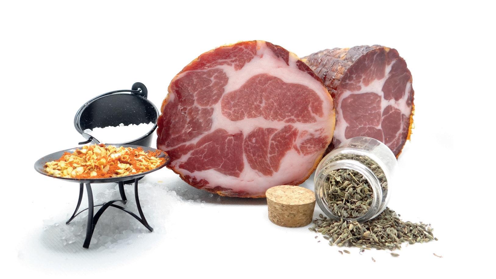 Speziato con seme di finocchio e peperoncino dolce, il Capo collo ha un gusto deciso e dolce al tempo stesso.