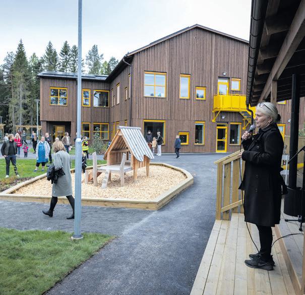 – Inriktningen på förskolan kommer att vara kultur och hälsa. Barnen kommer till stor del att arbeta med språk och kommunikation genom estetiska uttrycksformer så som bild, musik, sång, rörelse, drama och dans. Som en del i detta finns en studio på förskolans övre plan och ateljéer med stora fönster på varje avdelning, berättar rektor Camilla Backman i sitt invigningstal.