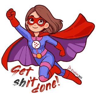 Som alltid på messe, er det viktig å ha litt «merch og giveaways». Det hadde selvsagt også Enable 365. Blant annet en haug med klistremerker, som viste en jente i supermann-forkledning, og med selskapets logo og det litt morsomme slagordet, «Get shit done!».