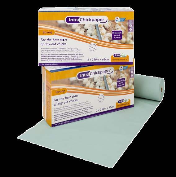 Tiltrekker seg kyllingene og fører til raskt fôropptak. Gir lavere førsteukesdødelighet, raskere tilvekst og forbedrer jevnhet på flokken. Papiret er laget av 100% resirkulert papir. Overflaten er ru slik at kyllingene får bedre stabilitet og grep. Det trengs ikke å fjernes, da det går i oppløsning og brytes fullstendig ned i strøet. Absorpsjon av den første avføringen gir hygieniske fordeler. Finnes i 3 varianter: