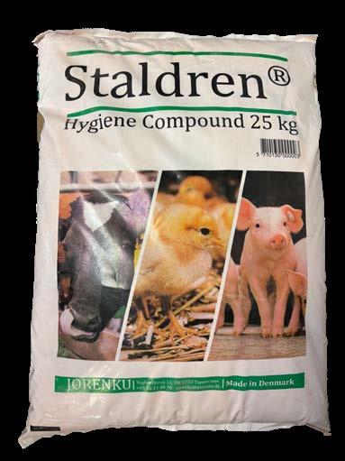 Effektivt tørrdesinfeksjonsmiddel som kan brukes mens dyrene er tilstede. Absorberer fukt i strø og luft, og minsker luktplager ved å binde ammoniakk. Er pH-nøytral, og etser derfor ikke på gulv og innredning. Dreper bakterier effektivt og har effekt mot fluelarver.
