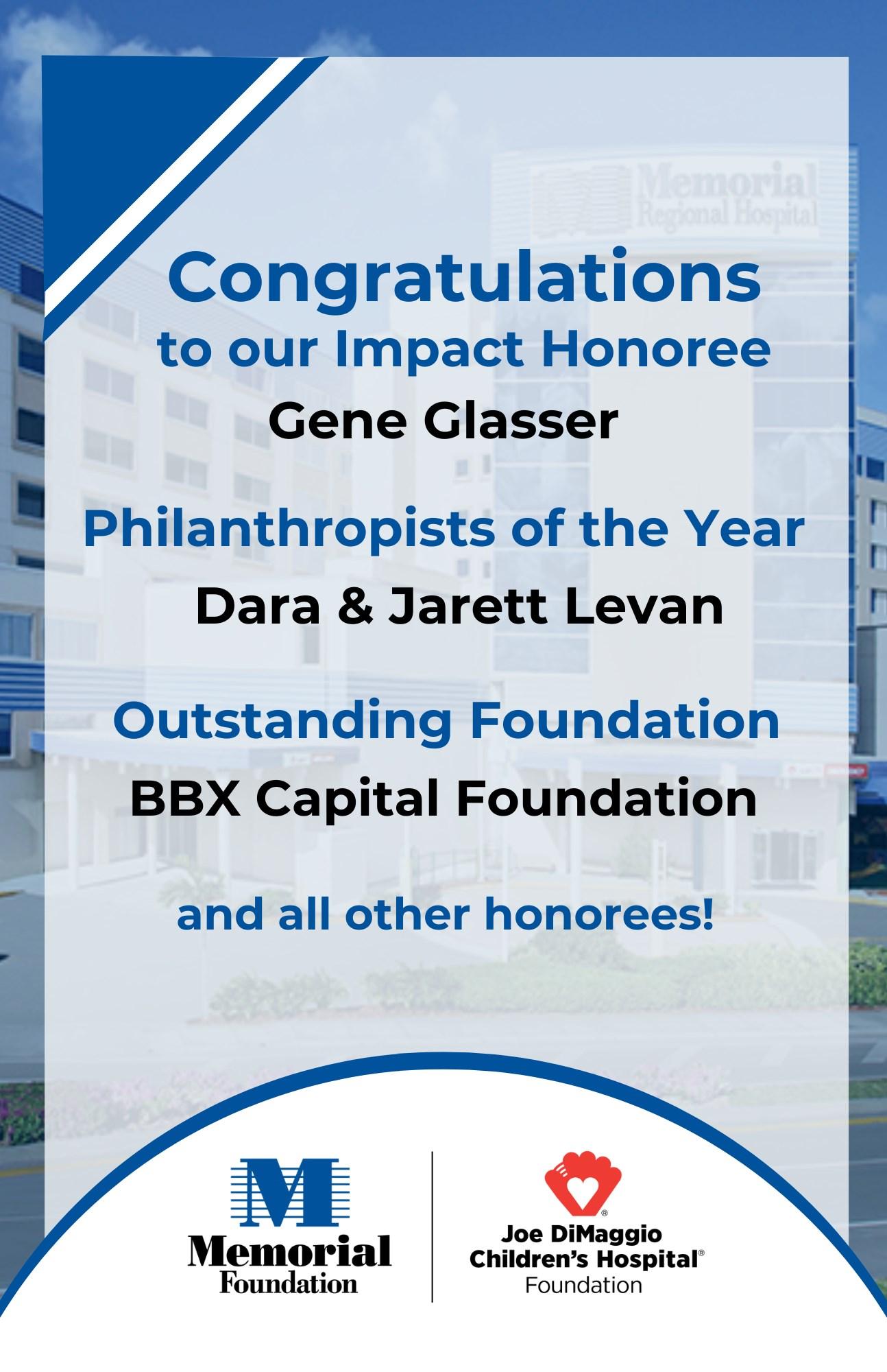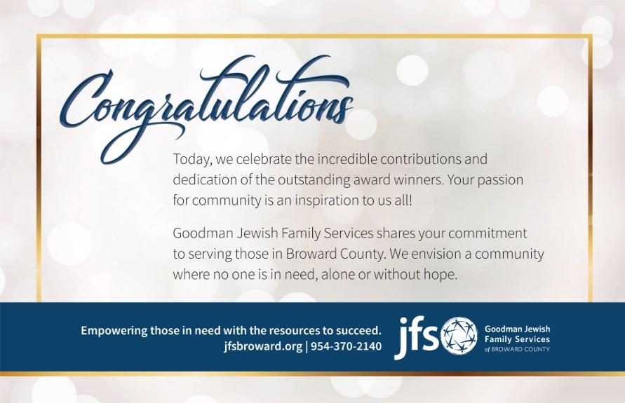 We hope you leave today’s event inspired and uplifted by the profound impact these exemplary honorees have made in Broward County. Having the opportunity to recognize these individuals and organizations has been an honor and privilege.