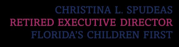 Christina Spudeas has dedicated most of her personal and professional life to public service, culminating in her work at Florida’s Children First where she focused on helping and advocating for children, and ensuring their voices are heard and respected. During more than 13-years as Executive Director of Florida’s Children First (FCF), she had guided the organization to new heights, dramatically expanding FCF’s impact and national prominence. She spearheaded some of the most significant legislative reforms in child welfare reform history – many of which have been emulated by other states or adopted nationally as the standard of care around the country.