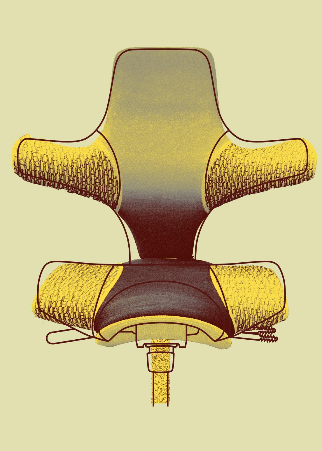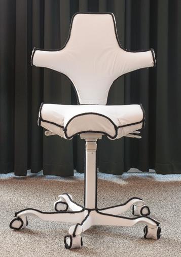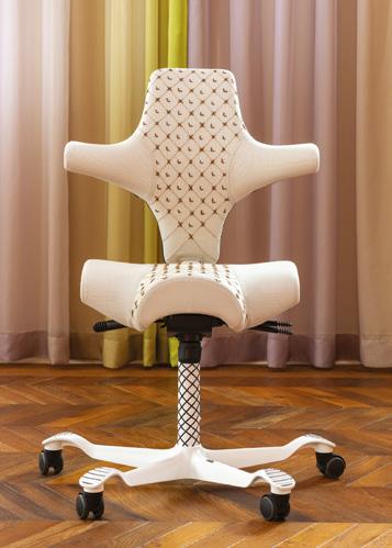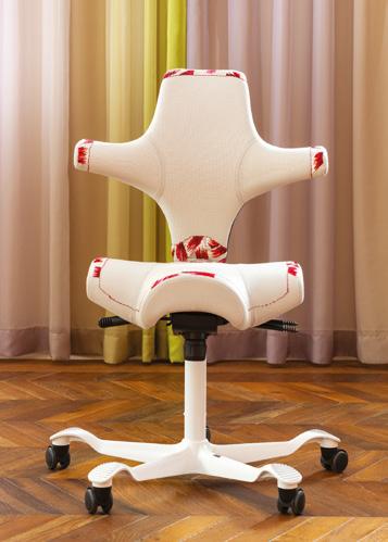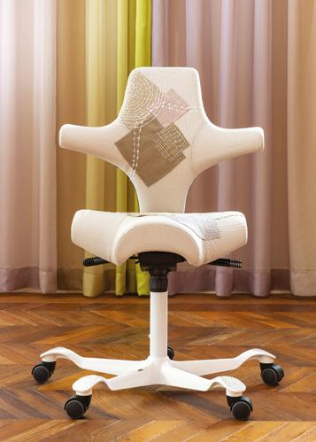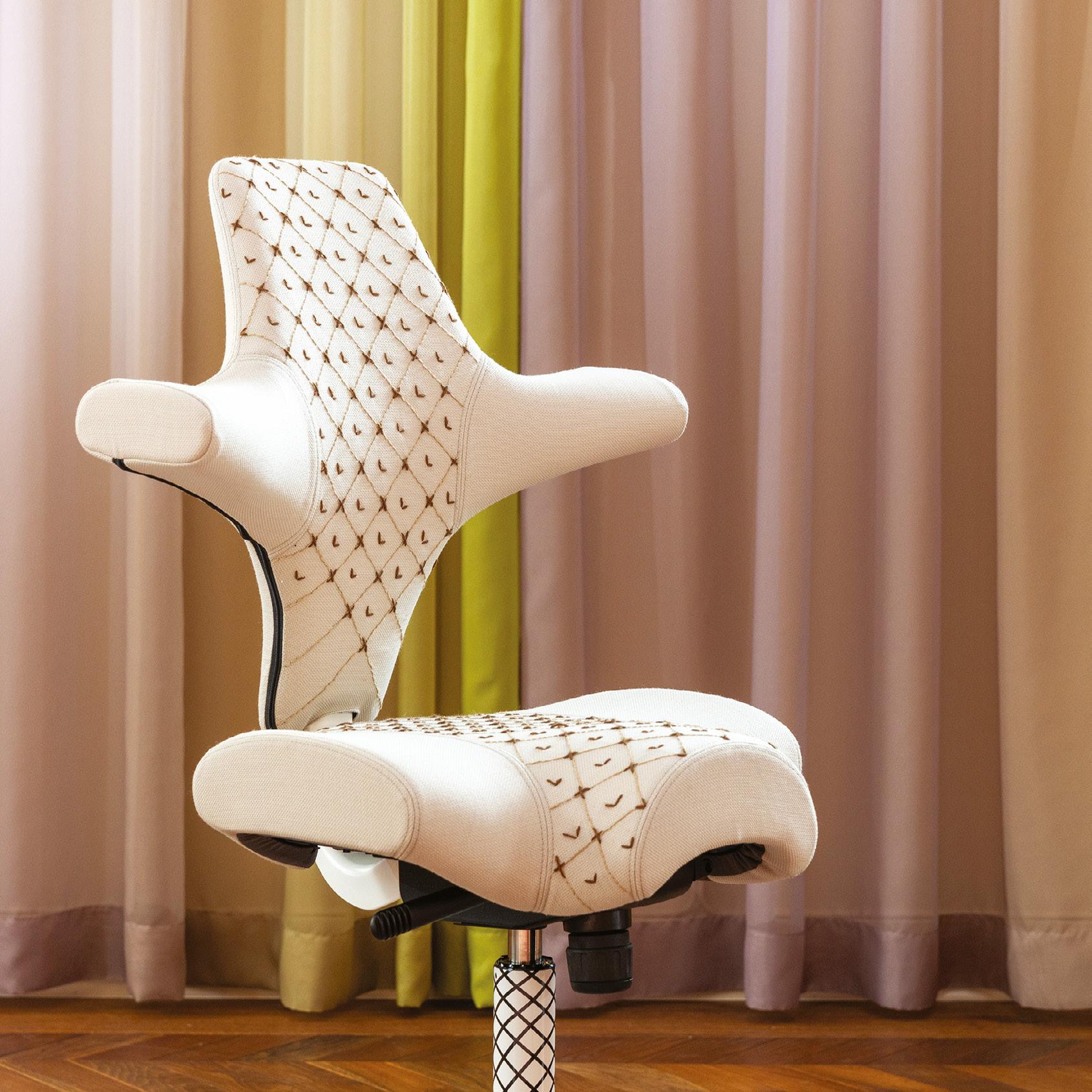 This interpretation celebrates the Capisco’s history of innovation and ergonomics through craftsmanship, repetition, and fashion-inspired detail.