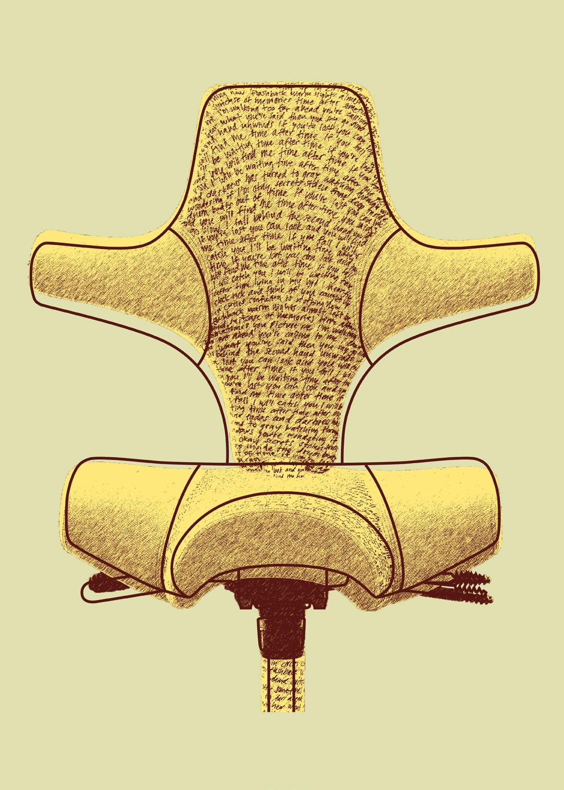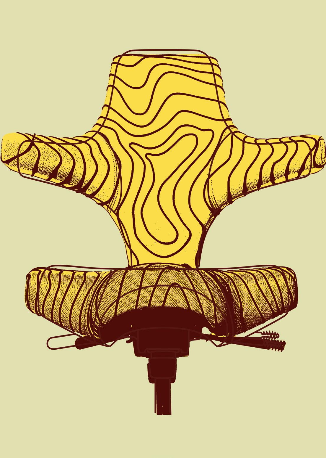 Inspired by the chair’s 3D contours, this interpretation reimagines the Capisco as a topographical landscape. The design explores elevation, flow, and form through line and layering.