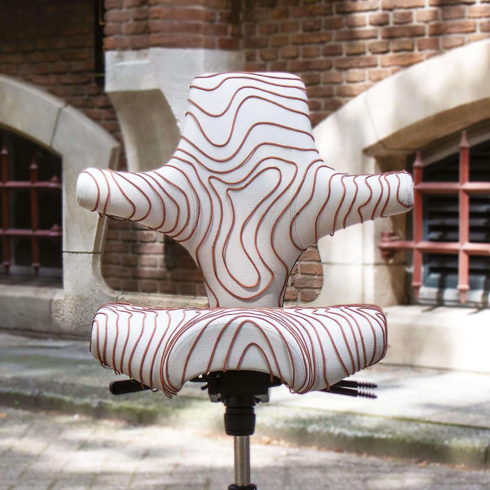 The result is a tactile journey across imagined hills and valleys, with the Capisco transformed into a sculptural study of geography and flow.