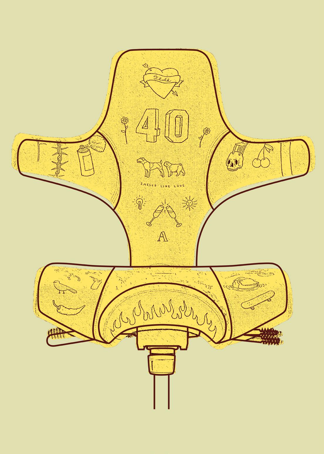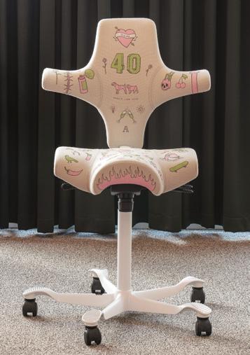 A rebellious 40-year-old celebrating a milestone in style. Inspired by tattoo culture, the HÅG Capisco is imagined as a bold and expressive character, shaped by symbols of identity, memory, and attitude.