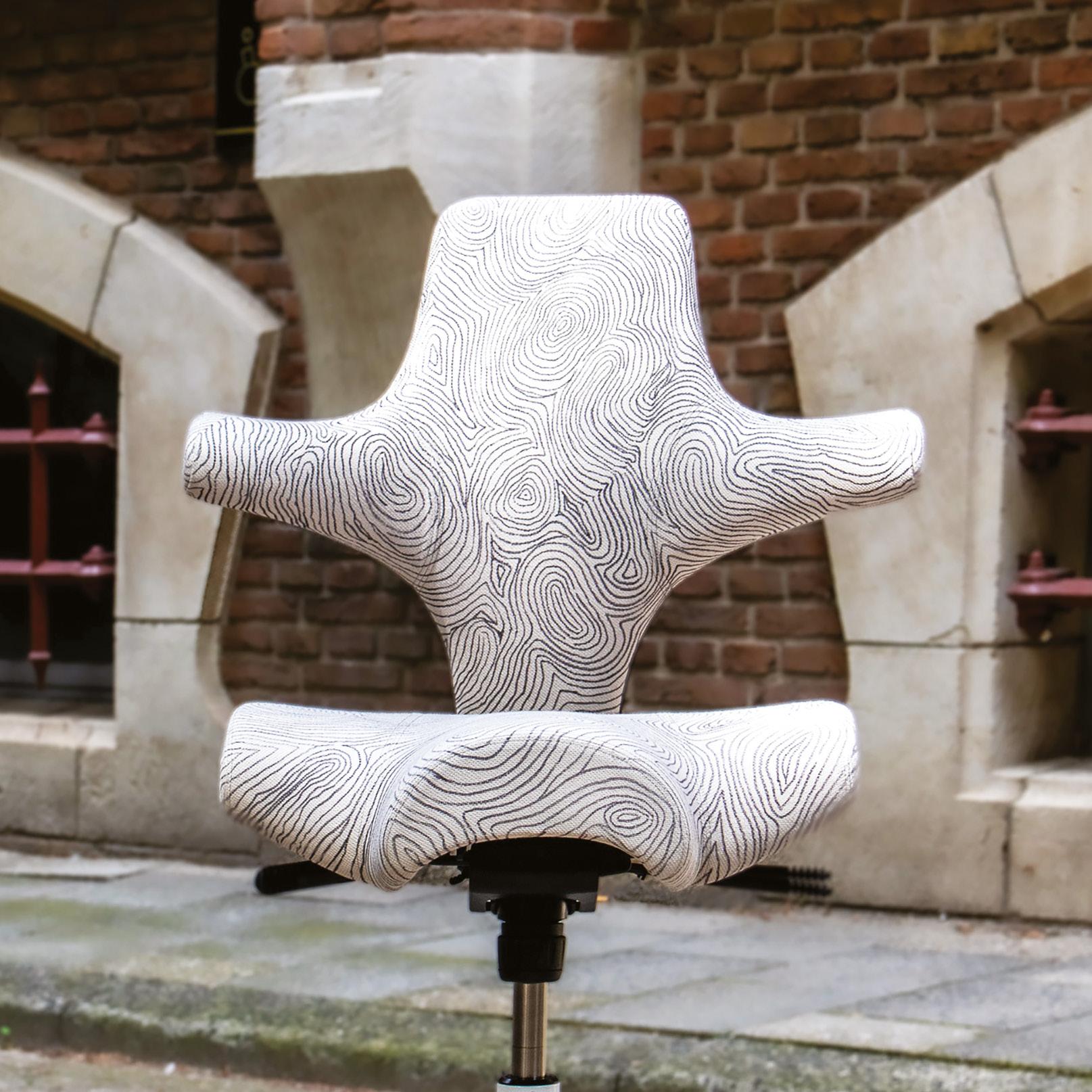 Inspired by fingerprints, the pattern explores the chair’s tactile and ergonomic features while adding a layered, personal dimension. It celebrates individuality and echoes the Capisco’s dynamic, adjustable nature.