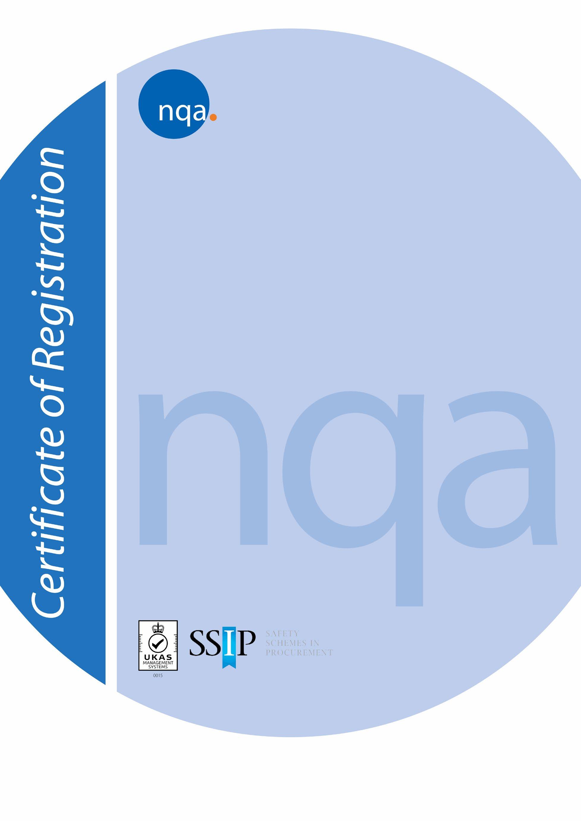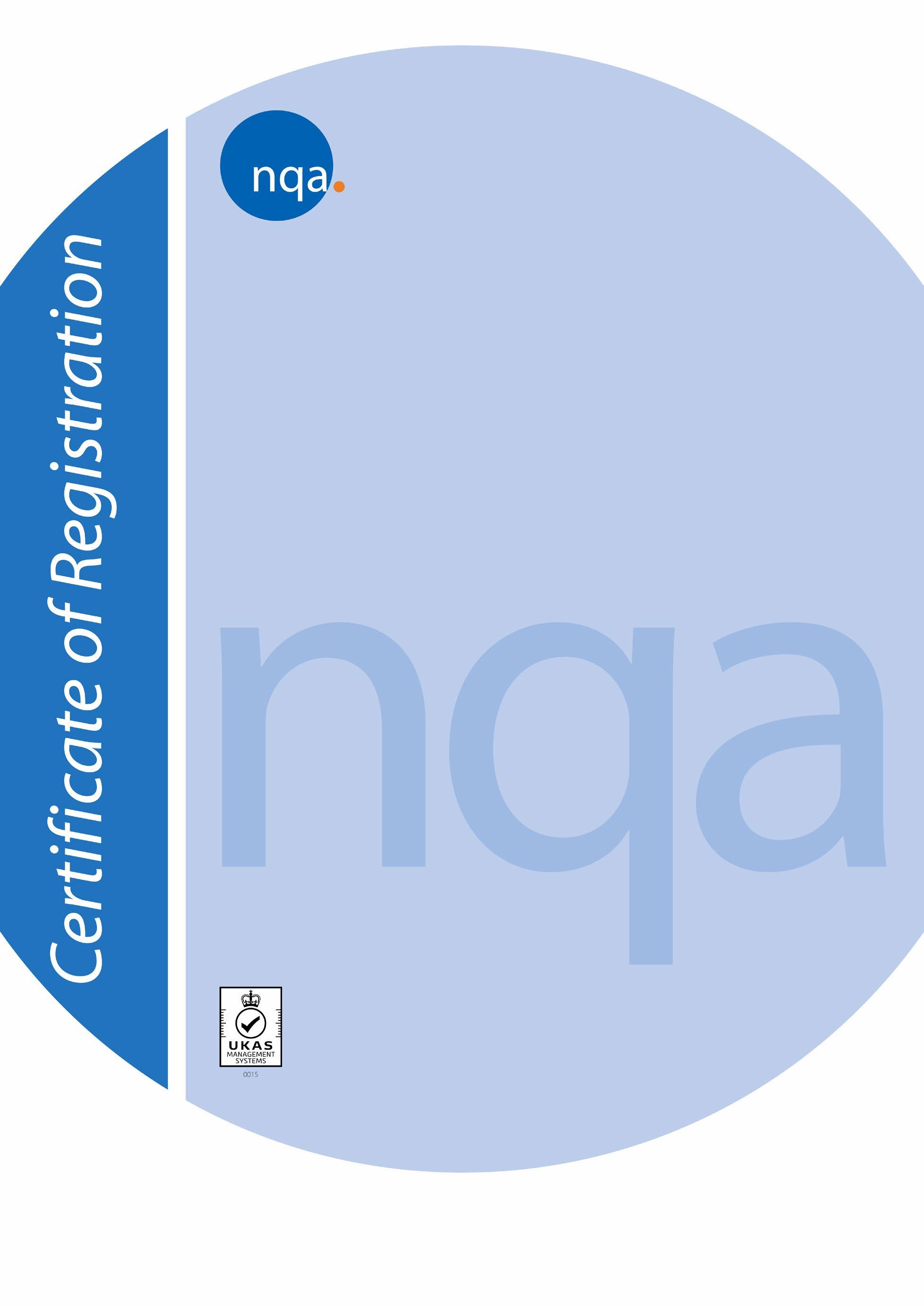This registration is subject to the company maintaining a quality management system, to the above standard, which will be monitored by NQA