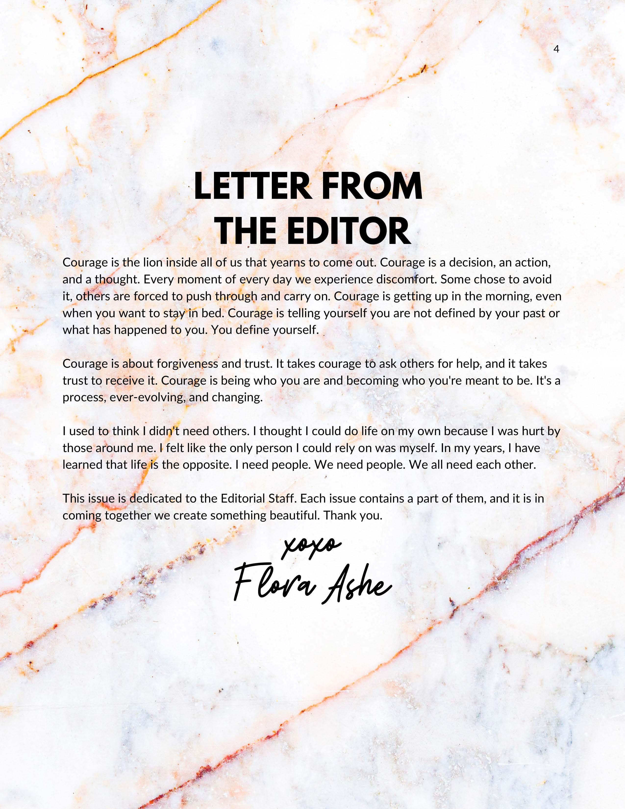 When you think of having the courage or being courageous, do you think of yourself? Who do you think of? We all have courage. We have the courage to put ourselves out there, and whether or not people will accept us is not up to us. We have the courage to put our art out there, even if no one will ever see it. Every moment of every day we experience discomfort. Some chose to avoid it, others are forced to push through and carry on. Courage is getting up in the morning, even when you want to stay in bed. Courage is telling yourself you are not defined by your past or what has happened to you. You define yourself.