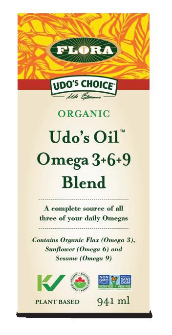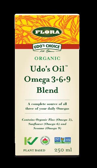 Udo's Oil® Omega 3+6+9 Blend is a plant-sourced, organic unrefined oil blend designed to provide the ideal 2-to-1 ratio of omega-3 and omega-6 essential fatty acids. Made