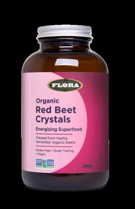 Pressed from the juice of freshly harvested organic beets, Flora's Organic Red Beet Crystals are instantly soluble and provide an easy and delicious way to enjoy the goodness of beets.