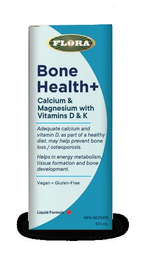 Flora’s Bone Health+ is a sophisticated bone health formula that features a 2.5:1 ratio of calcium to magnesium in a bioavailable liquid form. Vegan vitamin D3, vitamin K2, deep sea minerals, and a standardized silica mineral extract from spring horsetail have been added to create a truly comprehensive formula that supports bone mineralization and ensures calcium is deposited where it should be. The liquid form makes it easy to digest and has a delicious fruit juice base!