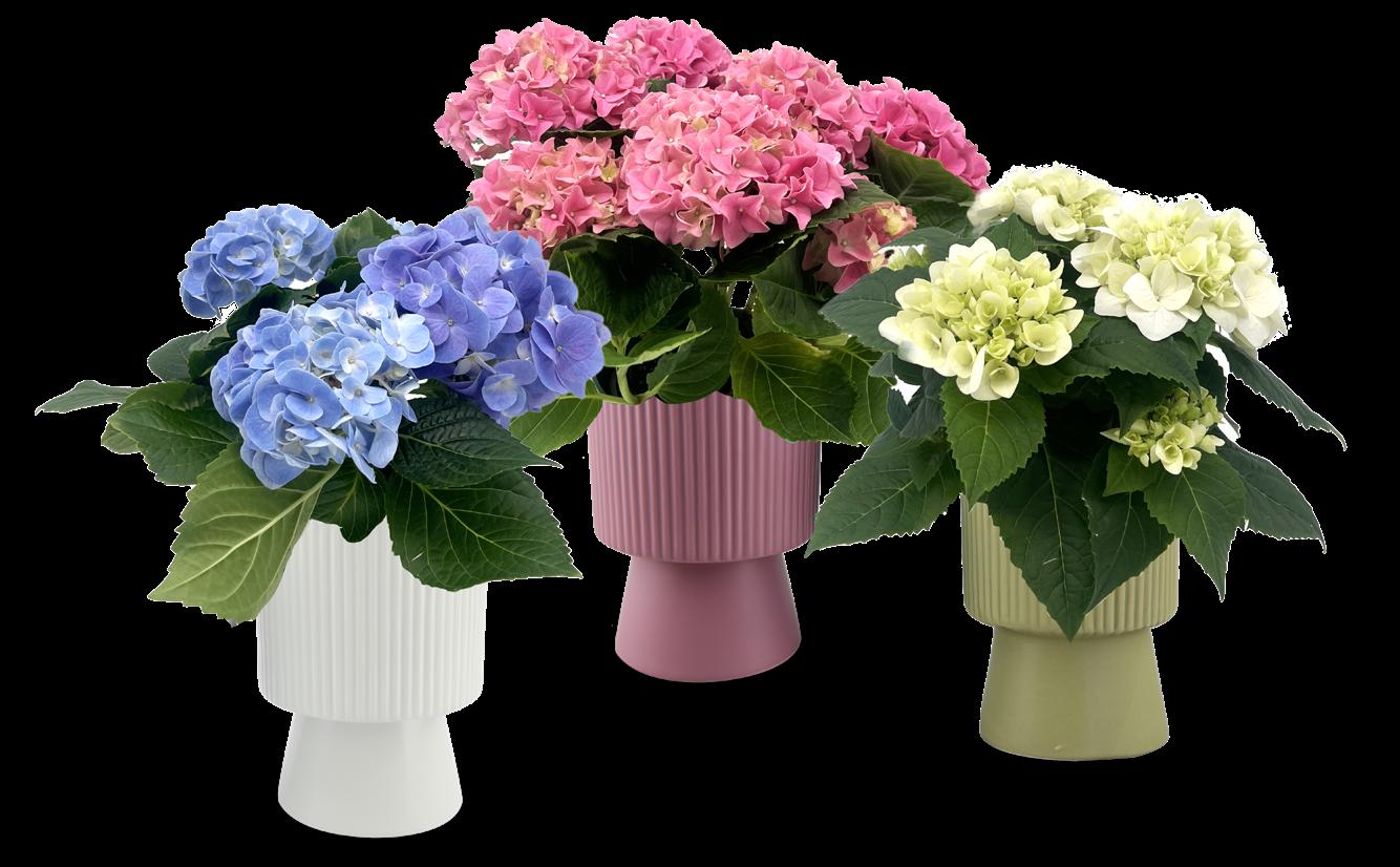 SELF-WATERING HYDRANGEA IN PEDESTAL CERAMIC WITH SELF-WATERING WICK