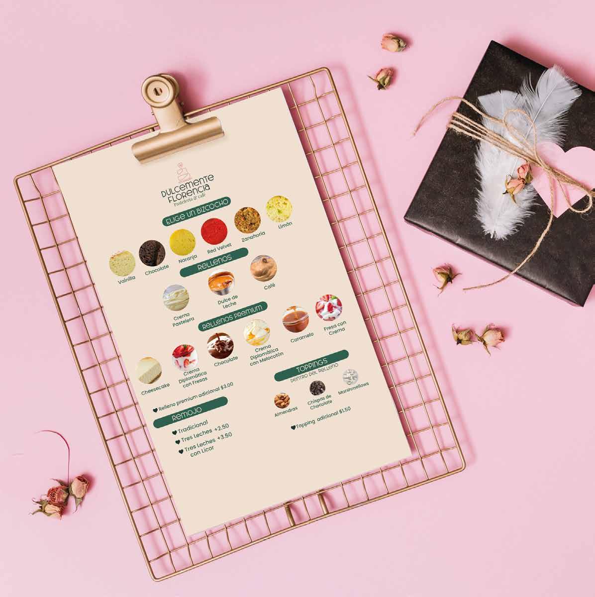 Corporate identity for Dulcemente Florencia located in Armenia, Sonsonate, i made a logotype with variants , color palette , icons for social media and menu design.