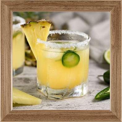 PREPARACIÓN: AGREGA SAL AL BORDE DEL VASO, AGREGA LOS INGREDIENTES AL SHAKER EN EL ORDEN DE LA RECETA, AGITA Y SIRVE.