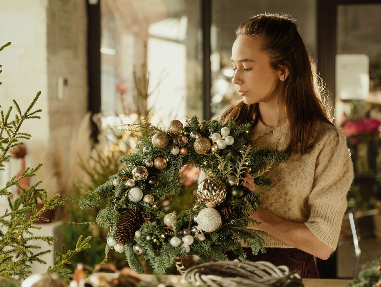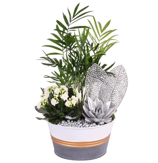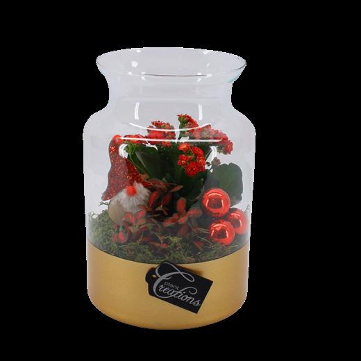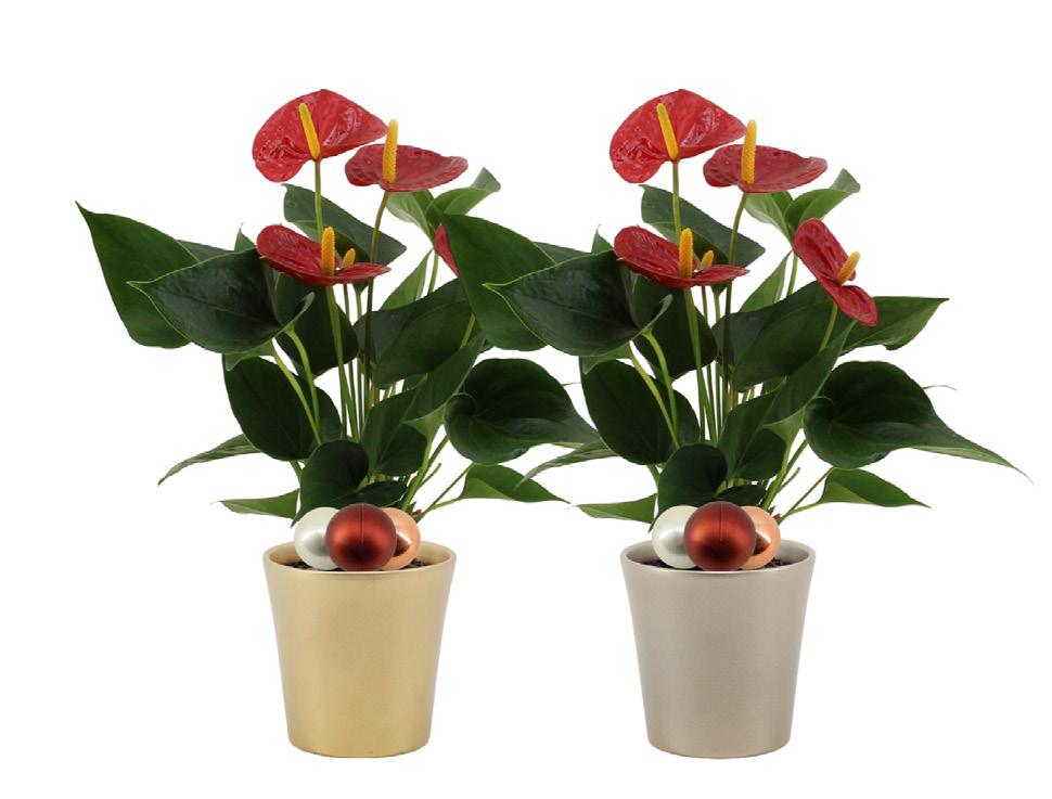 Op de achtergrond ‘Happy Xmas (War is Over)’ van John Lennon. Rondom veel rood, goud en uiteraard: groen. Traditionele kleuren die doen verlangen naar kerst uit vervlogen tijden. Toen alles nog eenvoudig was. Breng kerst terug tot de essentie en verwen uw klanten met sobere composities. Ton sur ton. Een intens rode Anthurium in een ossenrode sierpot. Of een coupe met een mix van diepgroene planten met feestelijke accenten in goud of zilver. Meer moet dat niet zijn.