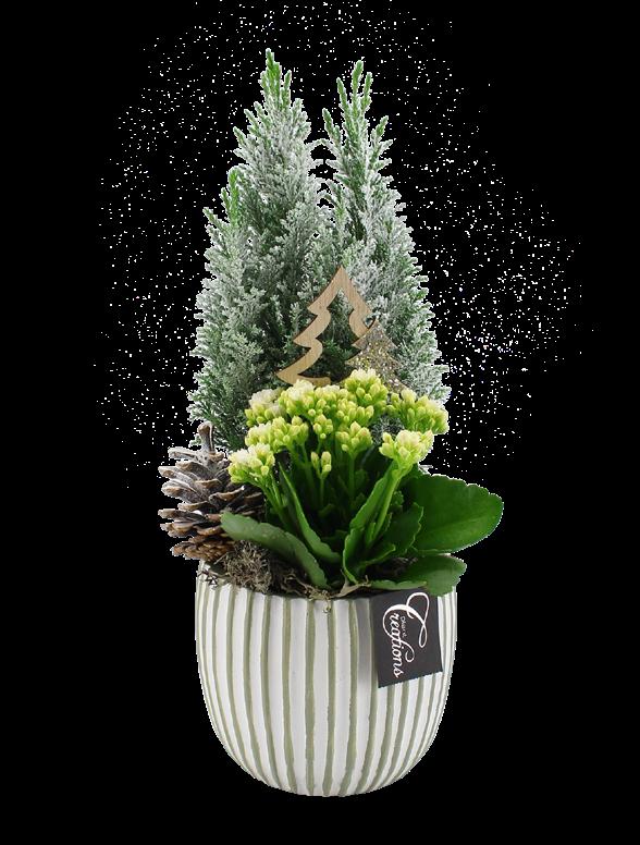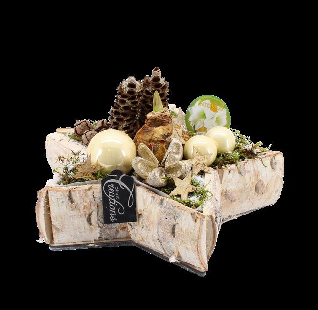 De frisheid van een bos. Het pure van hout. Mossige geuren en aardse kleuren. Een kerstster die fonkelt in de pikzwarte nacht. Beeldt u het zich in? Een reeks minitaferelen in een coupe. Denk maar aan Hyacinten in houten manden. Keramieken potten met intens groene planten rondom een witte kaars. Robuust rieten manden met een plantenmix naast een parelmoeren kerstbal. Zolang u de bomen nog door het bos ziet, komt alles goed.