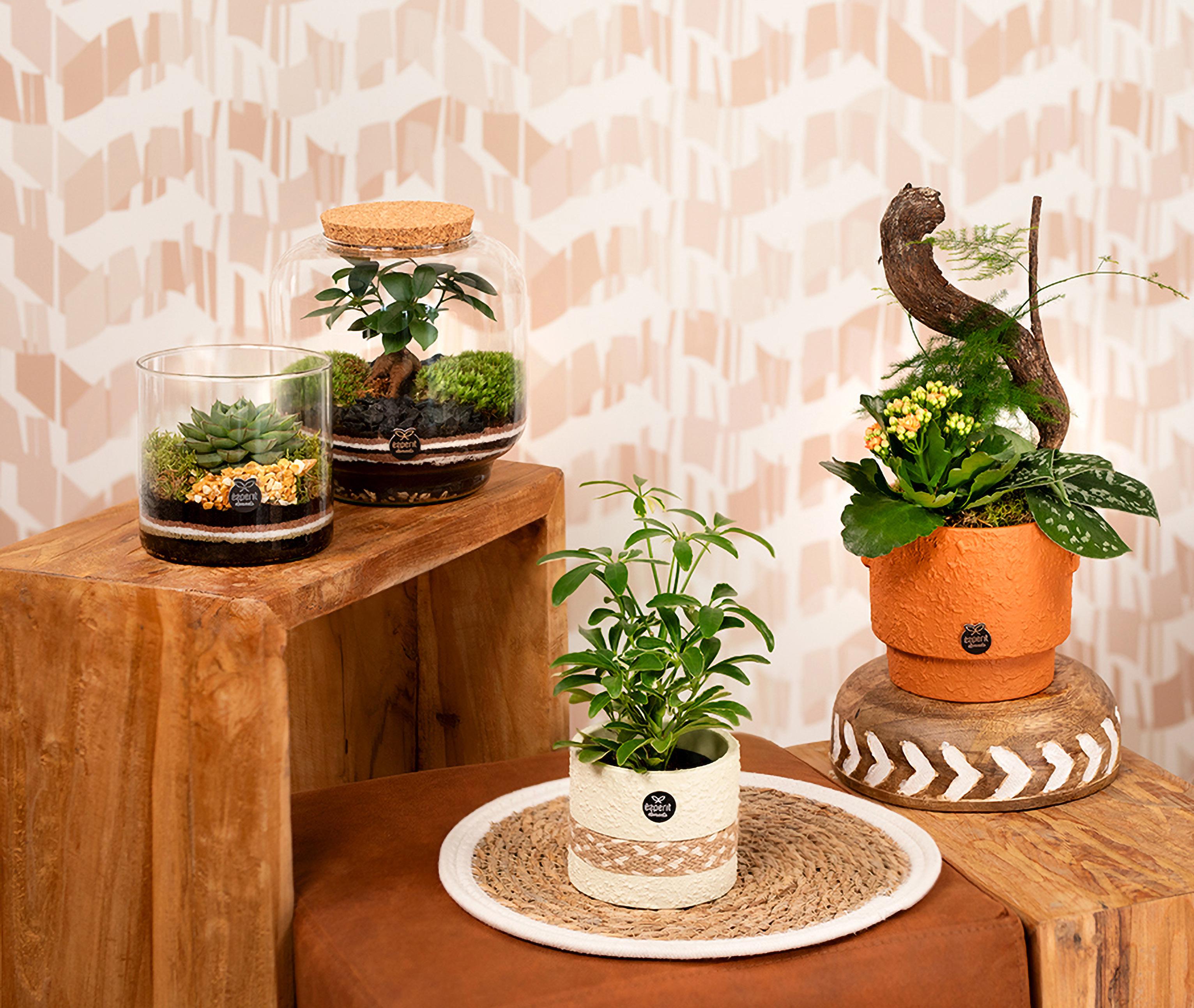 L’automne est la saison de l’atmosphère, de la douceur et des accents chaleureux. Avec notre collection d’automne, pleine de bacs à plantes et de plantes d’intérieur, vous apportez cette atmosphère chaleureuse dans votre salon. Pensez à des combinaisons ludiques de kalanchoés, de plantes à feuilles décoratives et de mousses, complétées par des ajouts joyeux tels que des champignons, des hiboux ou des plumes dans des tons rouille et automnaux.
