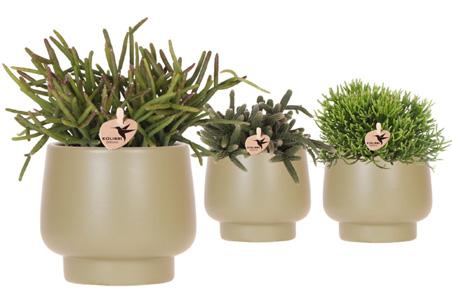 Outre le Lidcactus, Hofland Flowering Plants cultive une large gamme de plantes à fleurs telles que Dianthus, Calibrachoa, Argyranthemum, Bidens, Lobelia, Sanvitalia, Euphorbia et Scaveola. L’entreprise produit également un concept unique : les Checkies, trois plantes dans un seul pot.