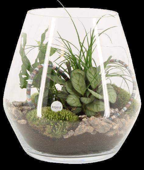 watersysteem. We maken gebruik van een eb- en vloedsysteem. Op onze velden ligt een laag water. Wanneer de planten voldoende water hebben opgenomen, voeren we het overtollige water af en slaan dat op in onze waterbassins met een totale inhoud van bijna 20.000 kubieke meter. Op deze manier hergebruiken we ons water. Nog een troef? De presentatietafels in de tuincentra maken gebruik van hetzelfde systeem. Zo ondervinden onze planten geen stress wanneer ze van omgeving veranderen.”