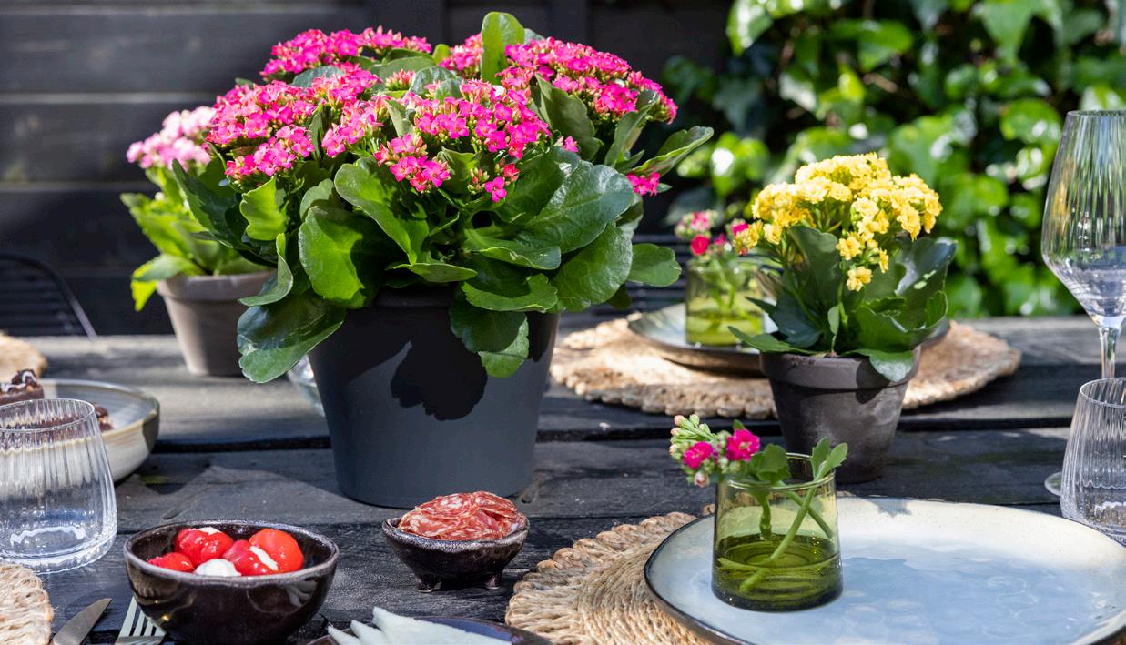 Met de Kalanchoë 21cm wordt een tuinpicknick nóg gezelliger. De plant, met enkele bloemen en in een hoge pot, is uitermate geschikt om tuin, balkon of terras op te fleuren gedurende de warmere maanden