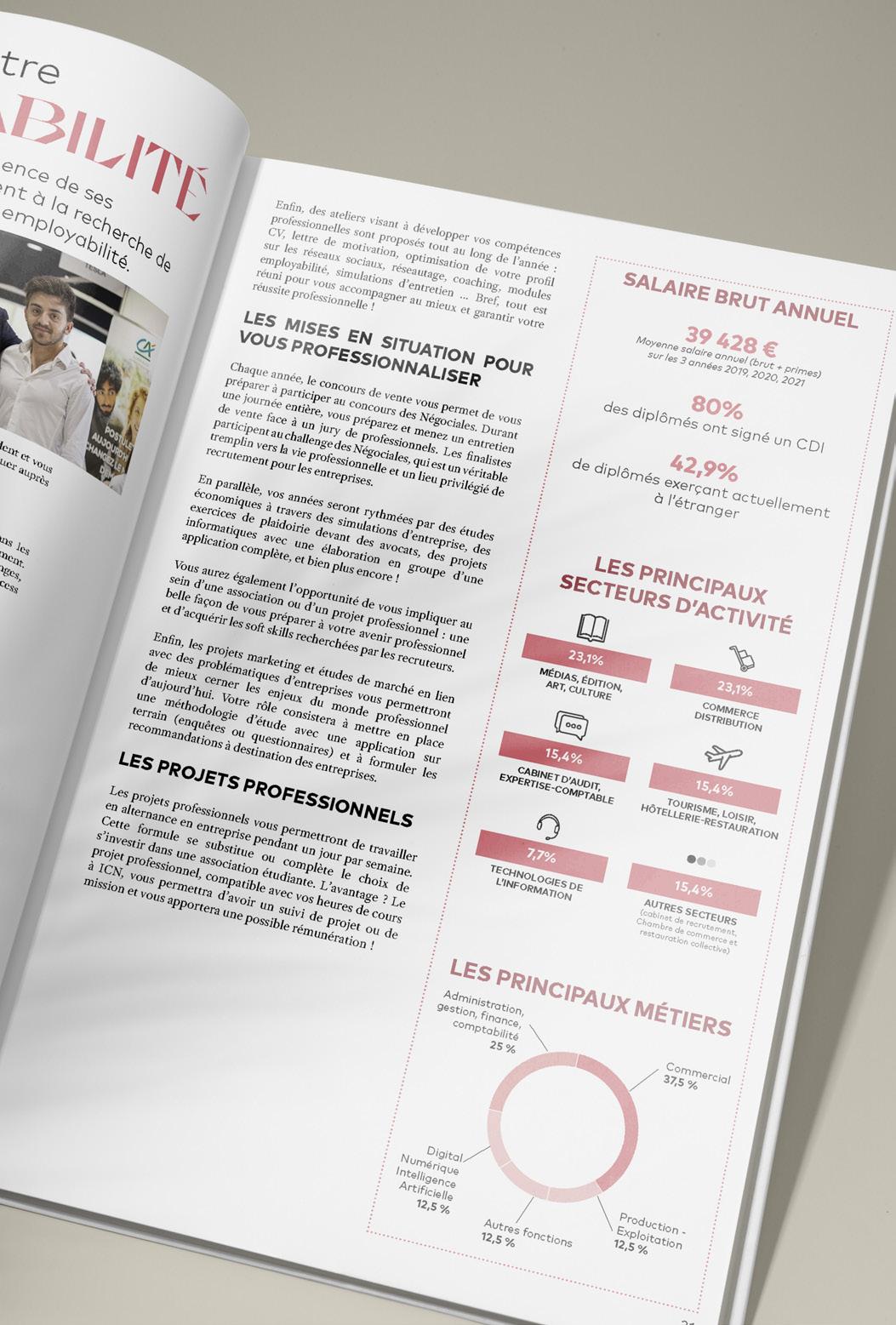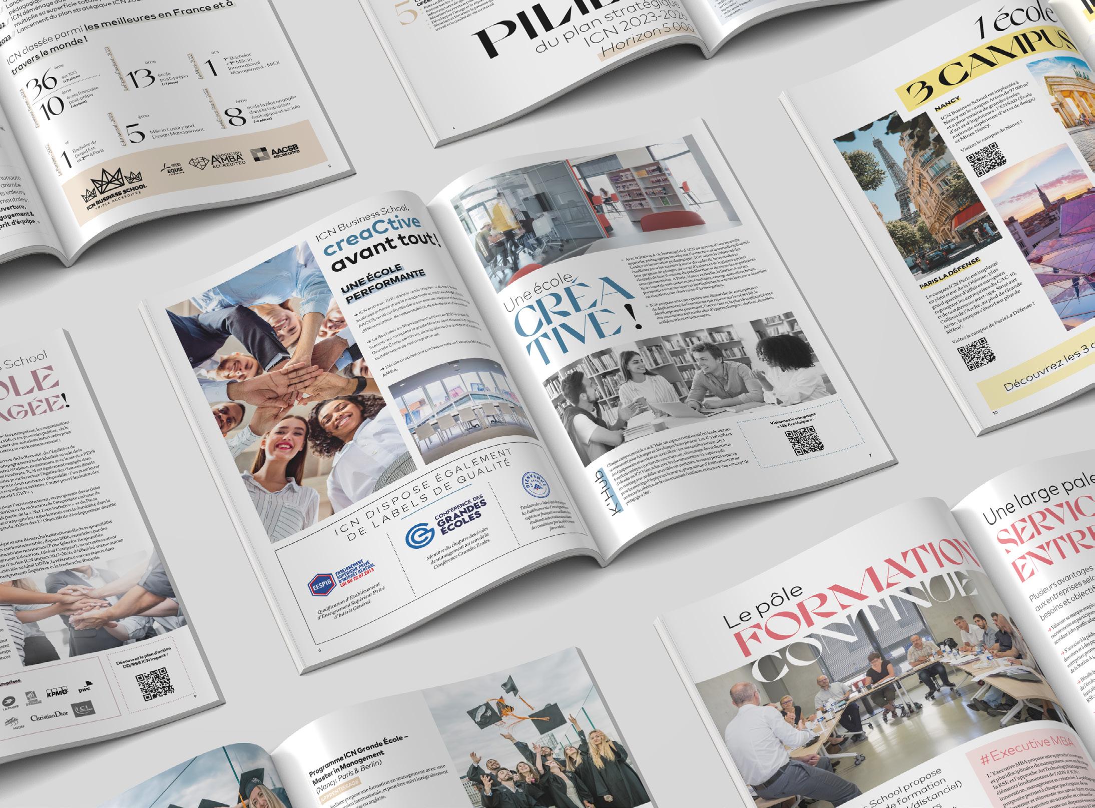 En tant quâinfographiste, jâai eu lâopportunitĂ© de travailler sur un projet passionnant avec une Business School de renom, ICN Business School. Mon rĂŽle consistait Ă crĂ©er des brochures informatives et attrayantes pour promouvoir les programmes acadĂ©miques et les opportunitĂ©s de carriĂšre offerts par lâĂ©cole.