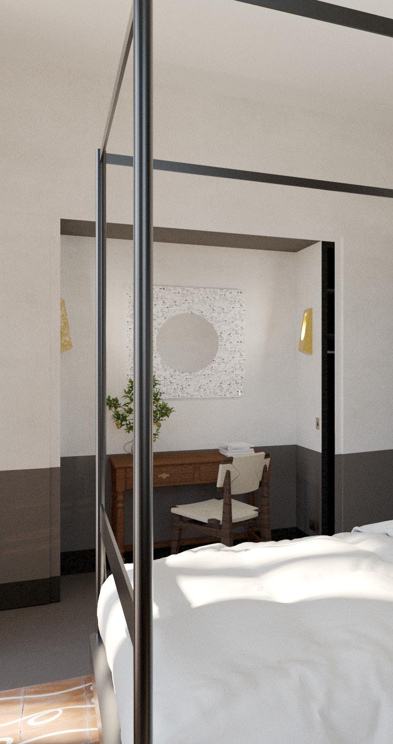 01 / Rendu 3D master suite de l’hôtel située au 2ème étage.
