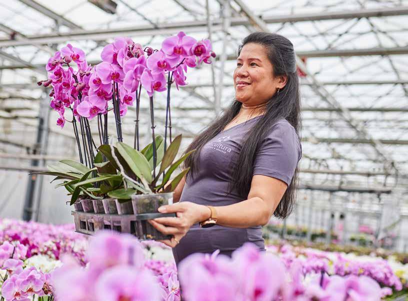 Cymbidium, especialmente las flores cortadas, se puede cultivar durante todo el año. Para lograr esto, la variedad temprana debe plantarse en septiembre, que es frío a fines de octubre y cálido a principios de febrero con un promedio de 20°C por día, para que florezca. El surtido navideño tiene que llegar a esos 20°C de media de 24 horas a partir de mediados de marzo. La variedad de floración tardía la puede dejar calentándola de otoño hasta finales de diciembre, con una temperatura media de más de 20°C al día. Desafortunadamente, con estos precios actuales de energía, eso es una locura. Si no se alcanzan estos promedios más altos diarios, la variedad temprana comenzará a florecer hacia Navidad y la varie dad de floración tardía alrededor del Día de San Valentín. El período de floración está cambiando y eso tiene consecuencias adversas para el patrón de suministro.