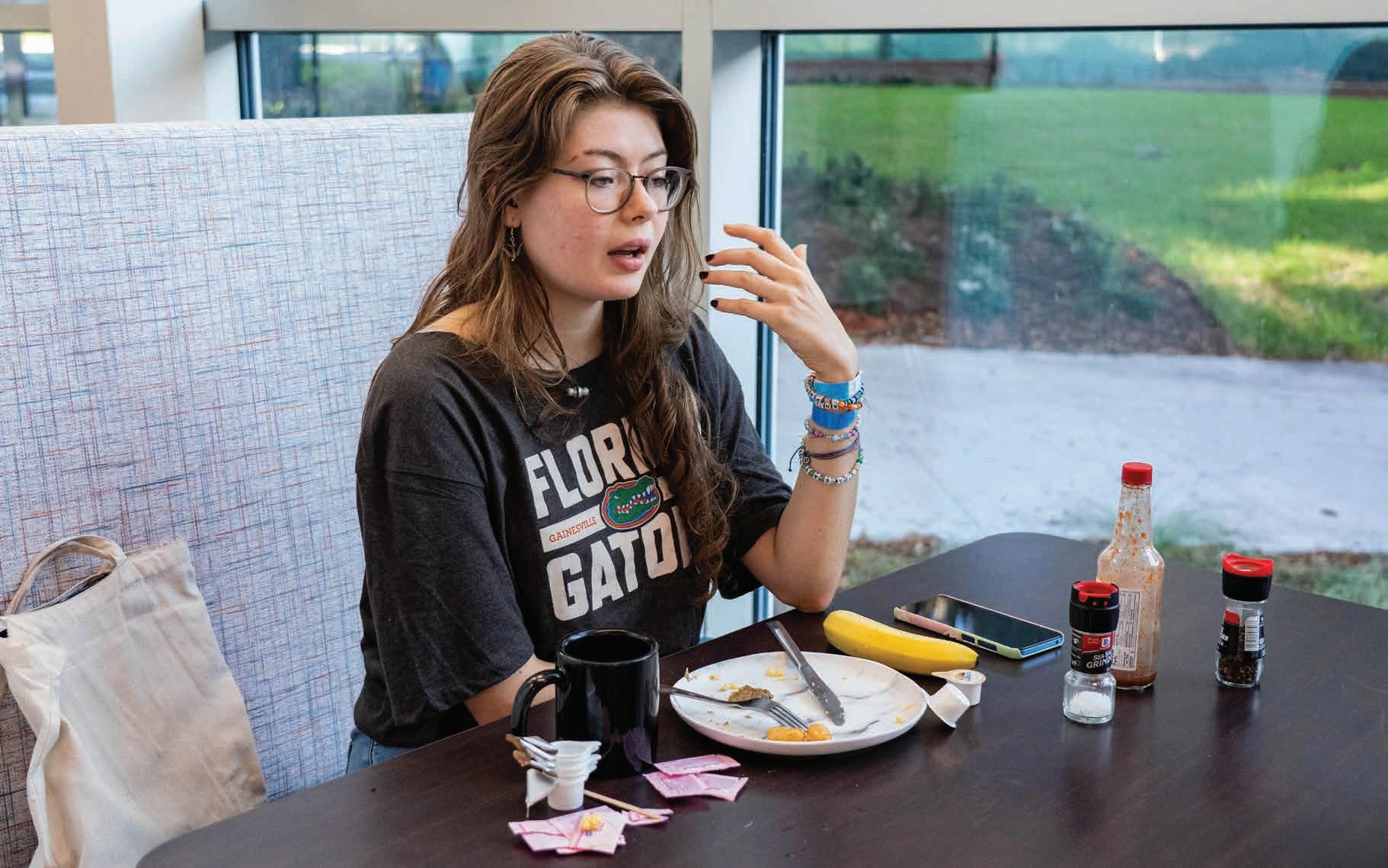A three-month stint in an Oklahoma residential center gave Larson her life and personality back from her eating disorder that first arose in middle school, she said. Now, the 20-year-old UF advertising junior freely eats former “fear foods” like peanut butter and dedicates more time to theater than the gym.