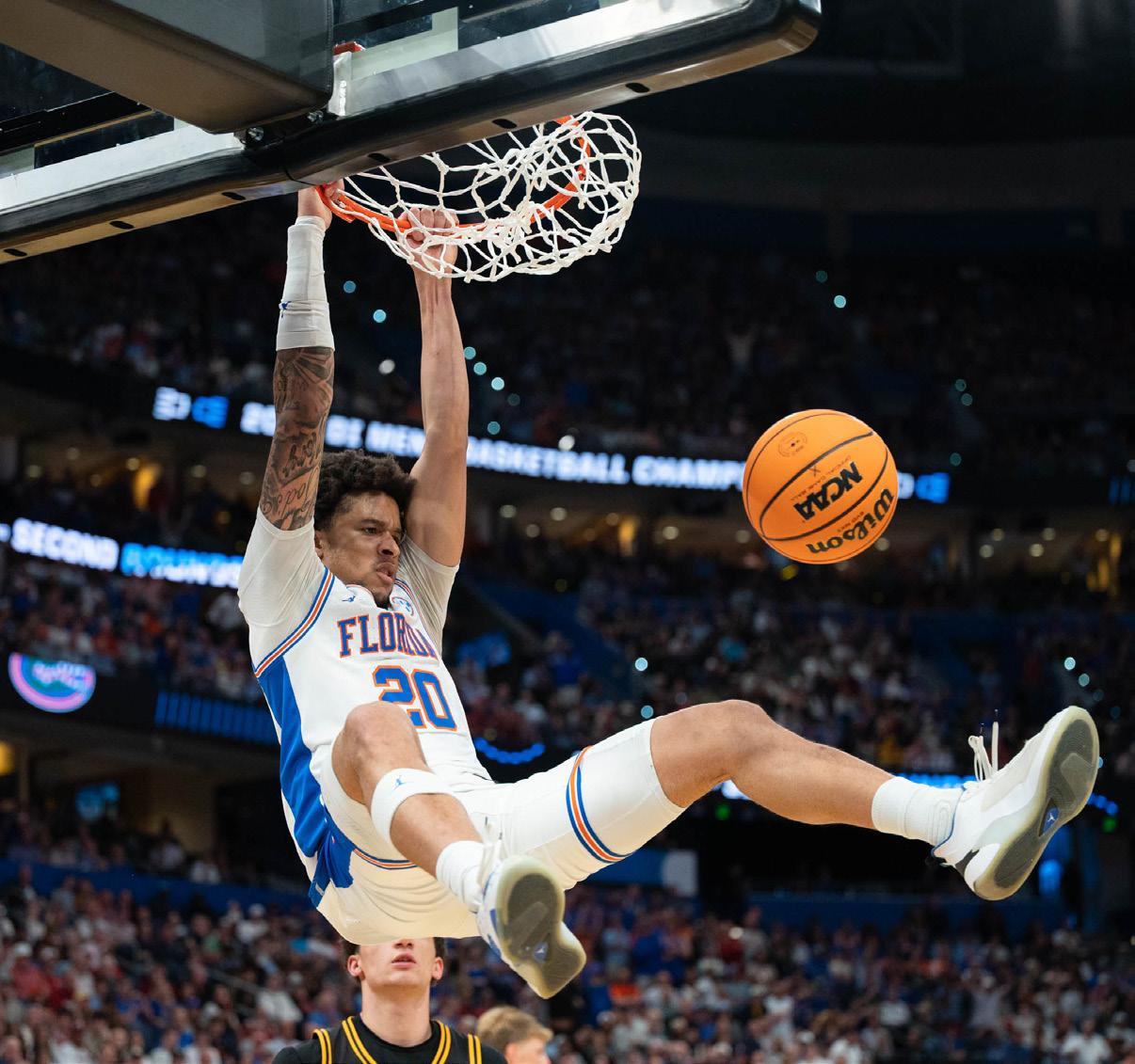 Florida guard Isaiah Brown dunks the ball during the second half of an NCAA Tournament second round game against Iowa, Sunday, March 22, 2026, in Tampa, Fla.