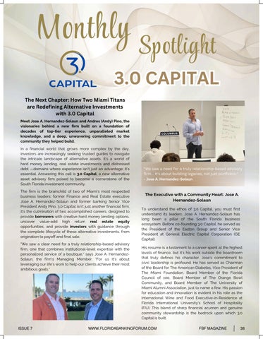 Jose A Hernandez-Solaun and former banki President Andy Pino 3 0 Capital isn't just anoth it's the culmination of two accomplished caree provide borrowers with creative hard money l uncover value-add high return real opportunities, and provide investors with gu the complete lifecycle of these alternative inv origination to payoff and final sale
