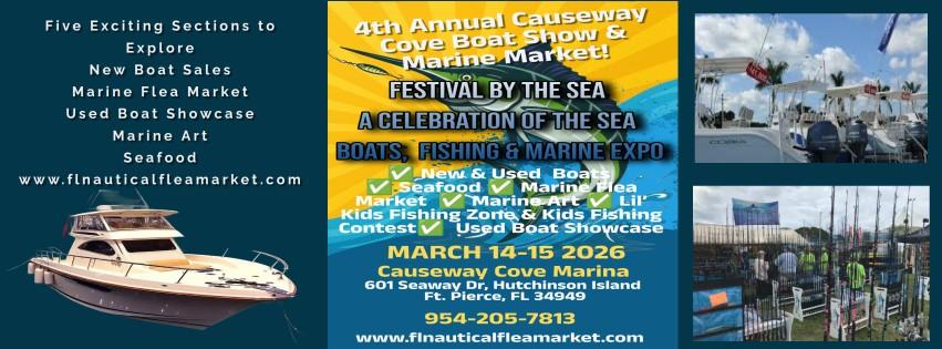 Ft. Pierce, FL – March 14-15, 2026 –Causeway Cove Marina is excited to announce the Festival of the Sea, a twoday celebration of marine life, boating, and family fun! Taking place at the picturesque Causeway Cove Marina in Ft. Pierce, this event is a must-attend for boating enthusiasts, seafood lovers, and families looking for a vibrant day by the water.