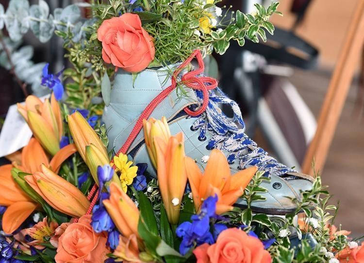 Afloralarrangementincorporatingarollerskatesitsfront andcenterSundayafternoonatamemorialservicefor HalPorter.PortermanagedtheRollerBarninInverness wheregenerationsofyoungandoldlearnedtoskate.
