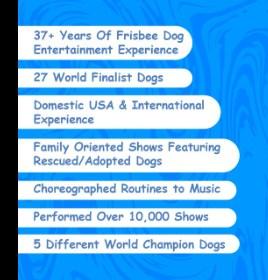 Trainer Lawrence Frederick started out playing in human Frisbee competitions until he discovered the disc dog world in 1991. Now Lawrence and his team of incredible rescue dogs are the most widely recognized Frisbee Dog Team in the world With 16 World Frisbee Dog Championship Finalists!