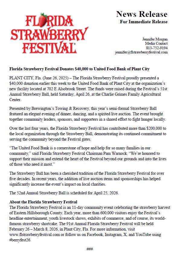 Feb 26-Mar 8 Florida Strawberry Festival Plant City