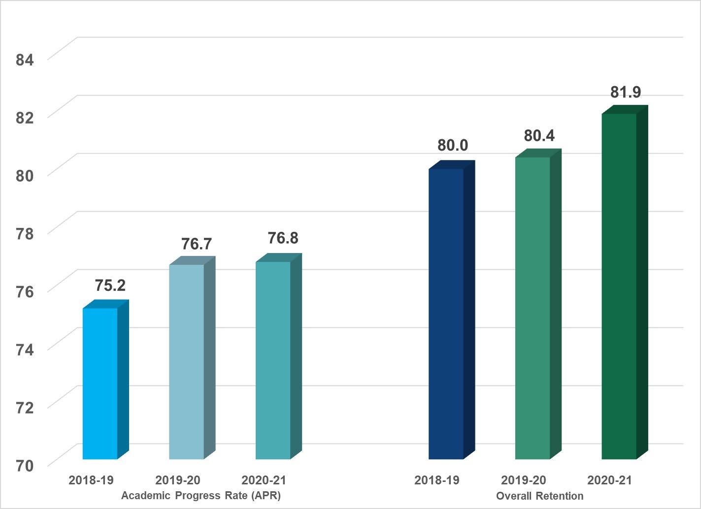 • Created an office that focuses on retention and graduation efforts (fall 2019); finalizing university-wide communication plan to help students track and progress timely through degree (fall 2022)