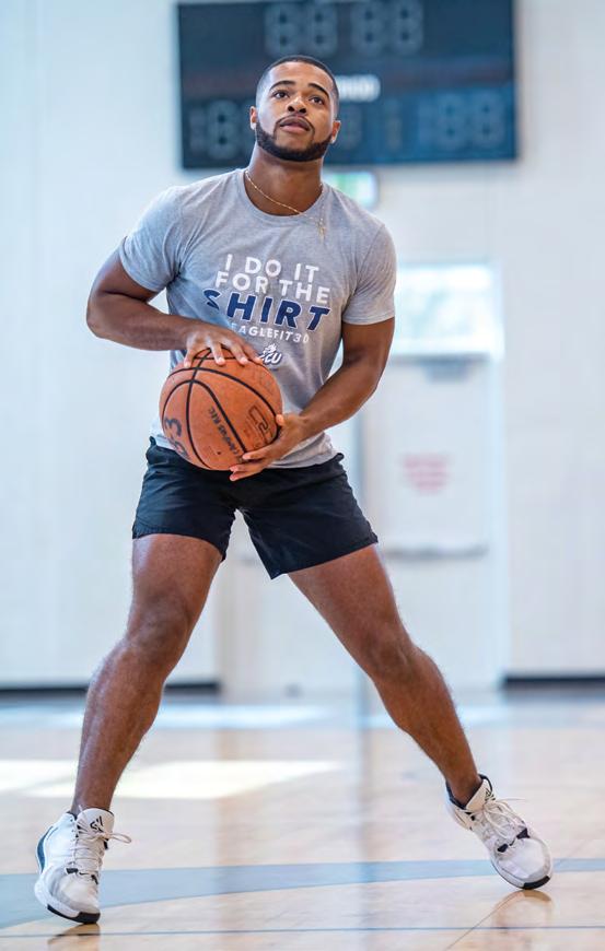 The University Recreation & Wellness Center is next to South Village. It’s a 50,000-square-foot building offering a wide range of amenities. Two indoor courts can be used for basketball, volleyball, badminton or pickleball. A strength and conditioning room, two studios for fitness classes, and a 6,000-squarefoot outdoor RecDeck. The cardio deck on the second floor has proven to be a student favorite, with machines looking over scenic campus wetlands.