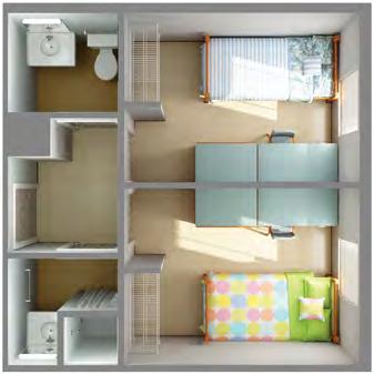 Biscayne, Everglades and Palmetto halls offer two-bedroom, single-occupancy suites with split-style bathrooms.