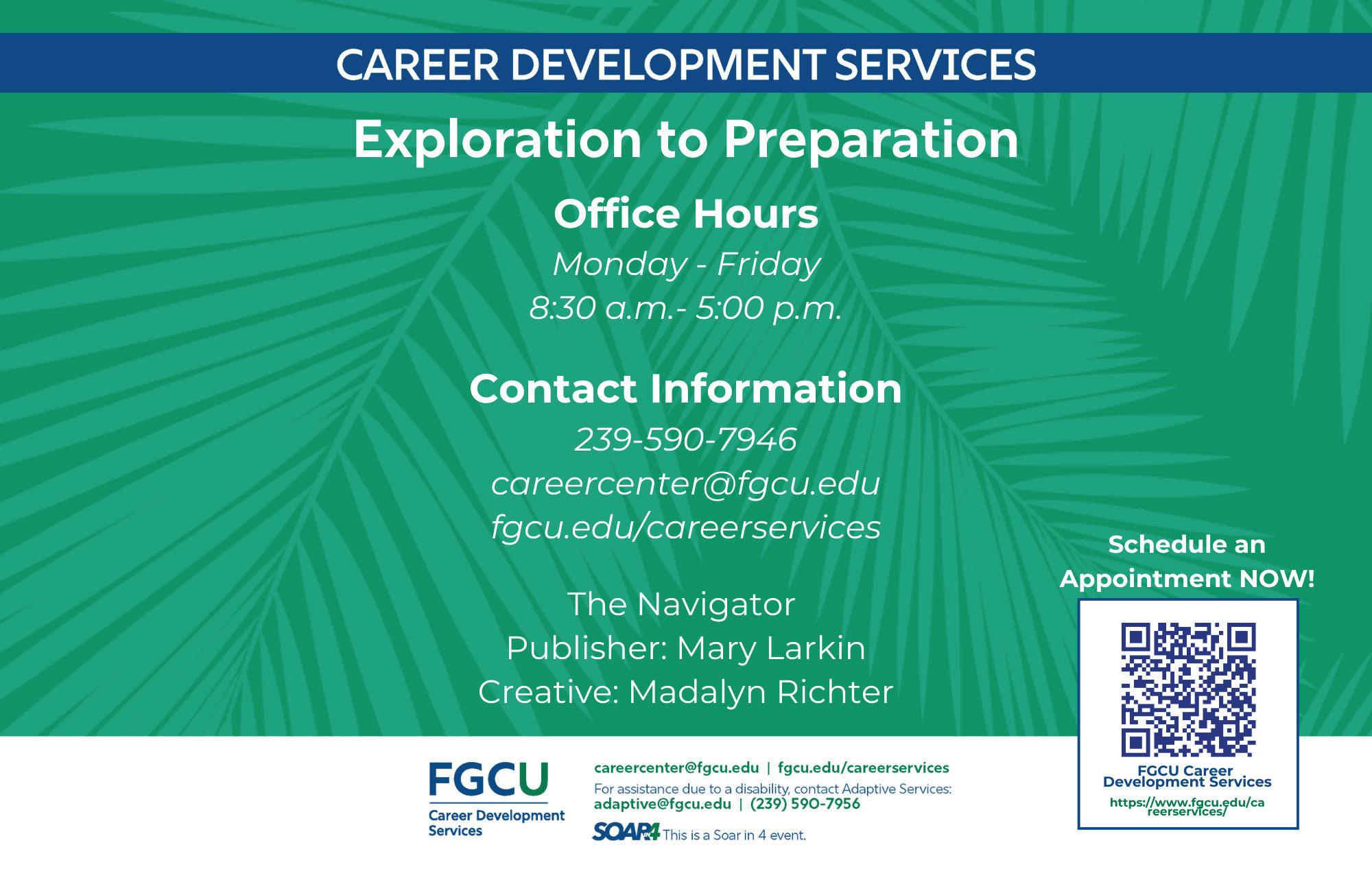 Eagle Career Network is your FGCU connection to internships, full- and part-time jobs, career fairs and events, workshops, networking opportunities, and more.