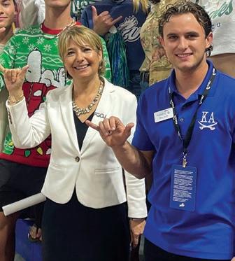 2. President Aysegul Timur and Mason Covelli at an FGCU basketball game.