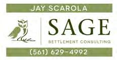2023 EAGLE® TRIBUTE BOOK 49 Diverse Solutions for a Brighter Financial Future PROUD FJA FOUNDER LEVEL BUSINESS FRIENDS OF EAGLE SPONSOR Start Planning Today. Jay Scarola, CSSC Settlement Planner (561) 629-4992 jscarola@sagesettlements.com Insurance-Based Options: • Structured Settlement Annuity • Fixed Indexed Annuity Market-Based Options: • United Settlement Advantage • United Fee Advantage • iStructure 2 • Investment Accounts • Trust Solutions: • Special Needs Trusts • Pooled Trusts • Minors’ Trusts • Settlement Preservation Trusts Balancing safety and growth potential has never been more important. Sage offers a full range of income tax-free and income tax-deferred financial solutions. 1United Settlement Advantage and United Fee Advantage offered through United Settlement Solutions. 2 iStructure offered through Independent Life Insurance Company EAGLE ® FOUNDER – $25,000