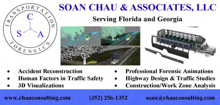 2023 EAGLE® TRIBUTE BOOK 53 WE’RE THE WORLD’S HIGHEST QUALITY PROVIDER OF DAMAGES VALUATION SERVICES. Uniquely qualified to provide a strong medical foundation for damages valuation. WE ARE PHYSICIAN LIFE CARE PLANNERS Future Medical Expenses Loss of Earnings Loss of Household Services PhysicianLCP.com CALL TODAY FOR A FREE CONSULTATION (866) 888-7352 SUPERIOR EXPERTISE FOR SERIOUS INJURIES EAGLE ® ADVOCATE–$15,000 Robson Forensic is a multidisciplinary Forensic Firm o ering a broad range of specialty experts. The majority of our technical experts are full-time employees; this is an important distinction for both our experts and our clients. Robbie Widlansky Business Development rwidlansky@robsonforensic.com 561.466.0570 www.robsonforensic.com 800.631.6605 Proud EAGLE Business Friends of the Florida Justice Association WE ARE THE EXPERTS • Exclusive In-House Experts • O ces Across the U.S. • Laboratory Facilities • Technical Resources • Quality Assurance • Deposition Prep Process
