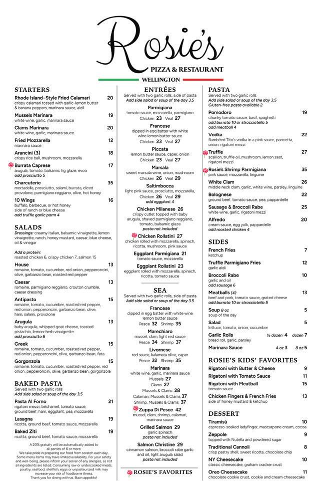 So far, business has been booming at Rosie’s. Since the restaurant’s Feb. 14 opening, it has been all-hands-ondeck to serve the Wellington community. Patrons have been very welcoming, and all the staff members at Rosie’s are extremely grateful.