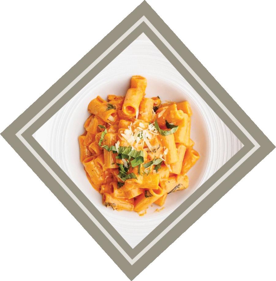 Rigatoni Vodka Pasta flambéed in Tito’s vodka with a pink sauce, pancetta and onion.