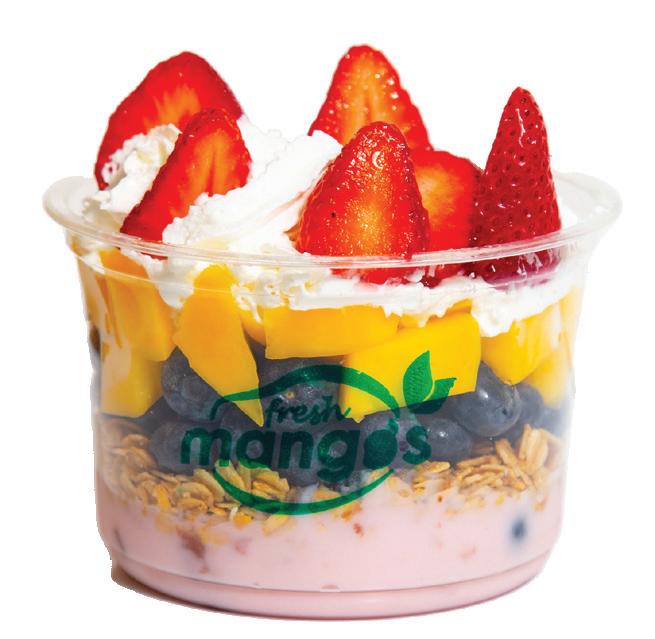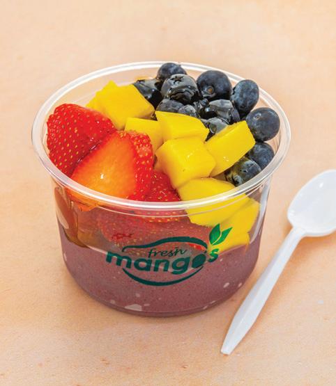 “Now we have mangos with more than 20 topping choices, depending on the location, up to four varieties of natural juice, frozen drinks, açaí and pitaya bowls, smoothie bowls, parfaits, fruit bowls, energizing teas, boba tea and more,” Tafur said.