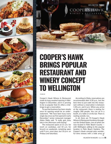 Cooper’s Hawk Winery & Restaurant located in the Lotis development at 1387 S. State Road 7 in Wellington. To learn more, call (561) 922-9463 or visit www. chwinery.com/locations/wellington-fl.