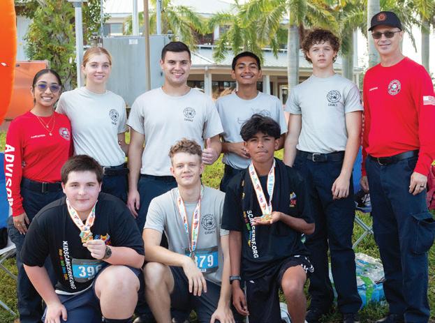 (Left to right) Palm Beach County Fire-Rescue cadets: (front row) Sean Glass, Levi Velten and Efren Martinez; and (back row) Kylie Walshe, Justin Siegel, Jayden Quiroz and Everett Velten with cadet advisors Martinez and Cooper; Claudia Needle, Ashley Barone, Farah Allam, Christie Lydon, Danielle Lewinsohn, Gerard Santacruz, Emily Romano and Jillian Guerry from CycleBar Wellington; Cynthia Johnson, Stacey Wesley, Evelyn McClendon, Sharon Wood, Dr. Wanza Sermons-Lee and Harrietta Hickman of the Palm Beach County Chapter of the Charmettes Inc.; and Team PBSO finishes the 5K race.