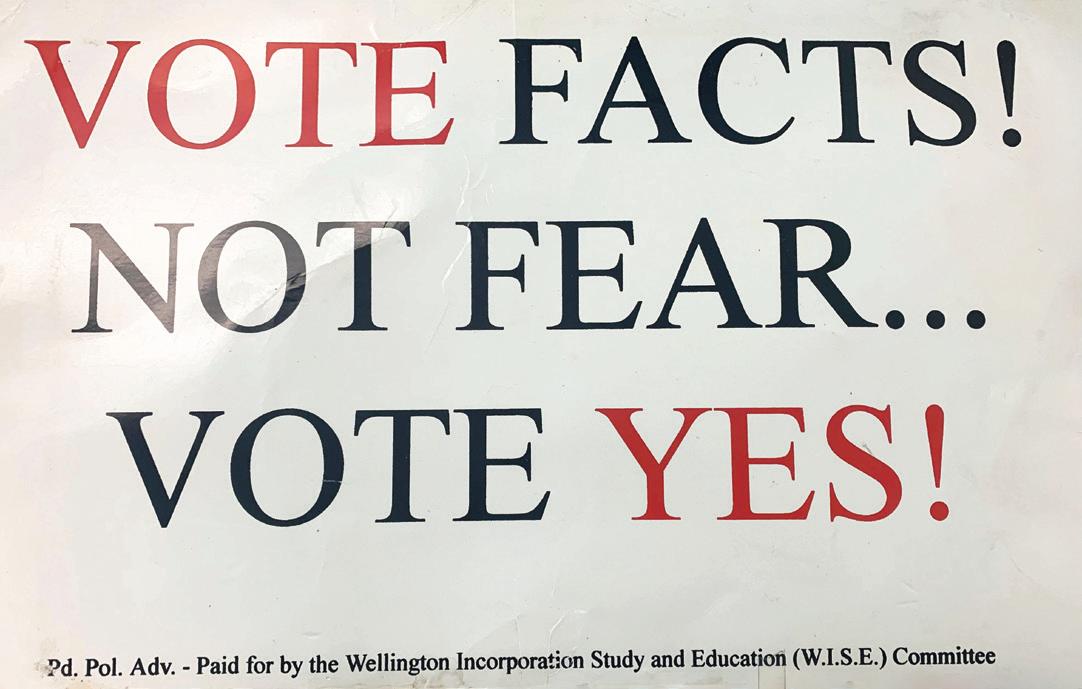 The combined attempts led to a non-binding “straw poll” on Nov. 8, 1994. For the first time, a vote showed that a majority of residents (57 percent) supported Wellington’s incorporation.